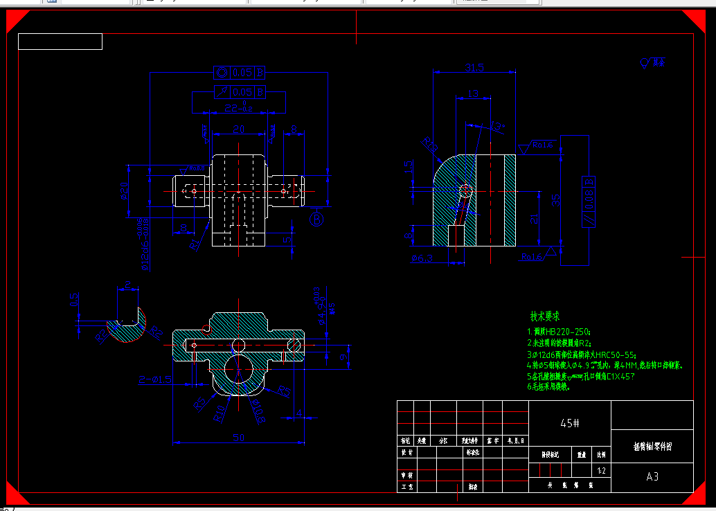 本次设计的主要内容是摇臂轴I加工工艺规程及 孔钻孔夹具的设计。摇臂轴I主要是与其它零件配对使用,其主要加工表面及控制位置为 外圆和与∮10.8孔中心轴线垂直的上下两端面。由零件要求分析可知,保证 孔和与∮10.8孔中心轴线垂直的上下两端面尺寸的同时应该尽量保证其垂直度,这对于后工序装配和总成使用上来说都有重要影响。所以,工序安排时,采取以 外圆精定位夹紧加工后,对 孔进行钻削加工同时成型,以达到加工出来的产品满足要求并且一致性好的目的。因其粗糙度为Ra3.2,可通过钻、绞削工序满足。本文的研究重点在于通过对摇臂轴I的工艺性和力学性能分析,对加工工艺进行合理分析,选择确定合理的毛坯、加工方式、设计高效、省力的夹具,通过实践验证,最终加工出合格的摇臂轴I零件。