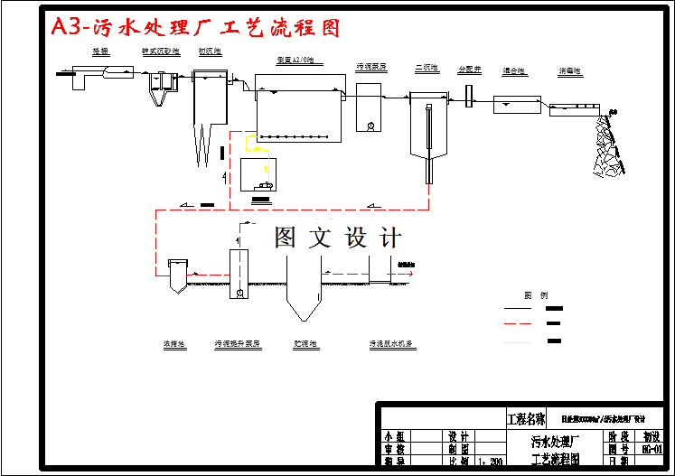 设计要求和基本资料:污水水量: 300000m3/d,污水水质:COD=380 mg/L,BOD=200 mg/L,SS=180 mg/L,NH3-N=40 mg/L,TN=50 mg/L,TP=8mg/L。 处理后出水要求:达到《污水综合排放标准》(GB8978-1996)一级标准B: COD<60mg/L,BOD<20 mg/L,NH3-N<8mg/L,TN<1.0mg/L,TP<15mg/L。工艺选择要求:倒置A2/O工艺。把常规脱氮除磷系统的厌氧、缺氧环境倒置过来,可得到更好的脱氮除磷效果。其特点在于:a缺氧区位于厌氧区之前,硝酸盐在这里消耗殆尽,厌氧区ORP较低,有利于微生物形成更强的吸磷动力;b微生物厌氧释磷后直接进入生化效率较高的好氧环境,其在厌氧条件下形成吸磷动力可以得到更充分利用;c缺氧段位于工艺的首端,允许反硝化优先获得碳源,进一步加强了系统的脱氮能力。倒置A2/O工艺与常规A2/O工艺的小型系统平行对比试验表明,倒置A2/O工艺的氮磷脱除功能明显优于常规A2/O工艺,其COD去除能力与常规A2/O工艺相当。