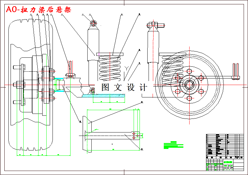 本设计只需绘制悬架系统CAXA二维图纸,三维模型不做要求。悬架是将车架与车轴连接起来的重要部件。其作用是传递车轮与车身的各种力与力矩,并且缓和路面传给车身的冲击载荷、衰减振动、保证乘员的舒适性、减小动载荷。而本车为前置前驱的小型乘用车,采用的是具有良好操纵性的麦弗逊式前悬架以及具有良好侧倾稳定性的扭力梁后悬架。在保证行驶正常的情况下能够得到更好的平顺性。根据给定的车型和悬架形式来进行悬架参数的确定,有悬架的固有频率、悬架的刚度、静挠度和动挠度。并以此计算所选弹性元件的尺寸并且进行应力校核。通过阻尼系数和最大卸荷力确定了减振器的主要尺寸。最后进行了导向机构和横向稳定杆的设计。采用 CAXA 软件分别绘制前后悬架的装配图和零件图。利用 Matlab 软件对悬架系统的平顺性和运动稳定性进行了编程分析,论证了该系统设计方案的合理正确性,能够满足实际的需要。