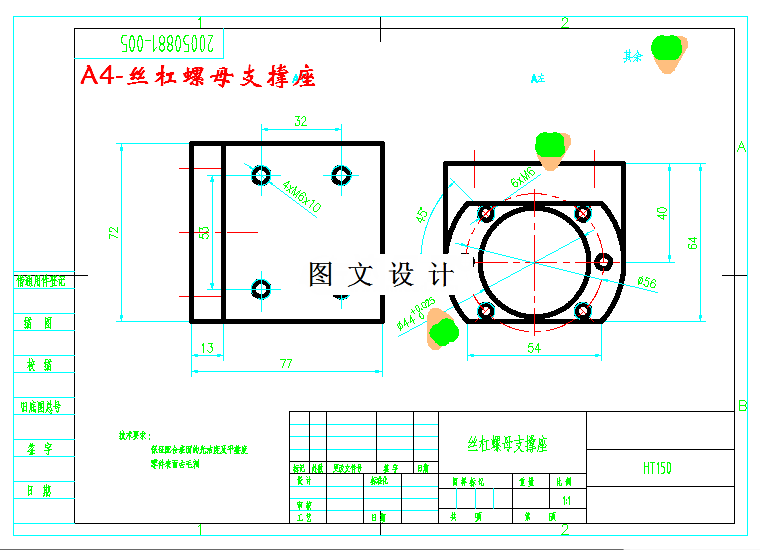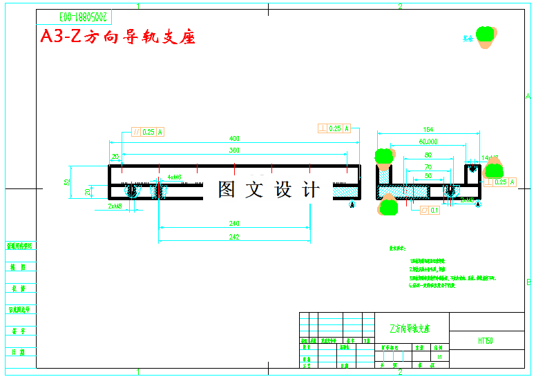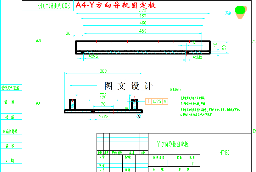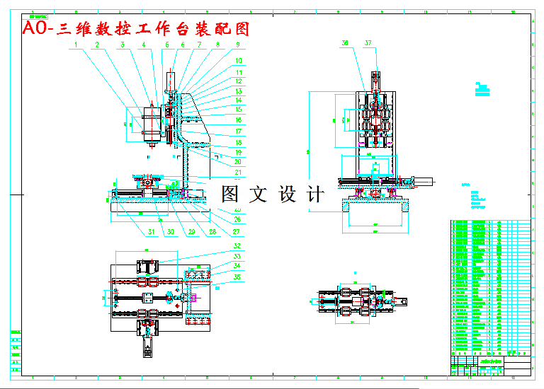 本设计主要对数控工作台的机械部分进行设计,根据已知的条件参数计算得出相应的结果选用与之相配的标注件型号,最后根据选用的标准件进行工作台的整体组装,运用AutoCAD软件完成工作台的装配图以及相关的非标准件零件图,最终完成工作台的整体设计。 技术指标 :主电机功率:3KW电主轴电机 行 程 : X:300mm Y:250mm Z:150mm 工作台尺寸:230mm 270mm 16mm 刀 具:10mm球头铣刀