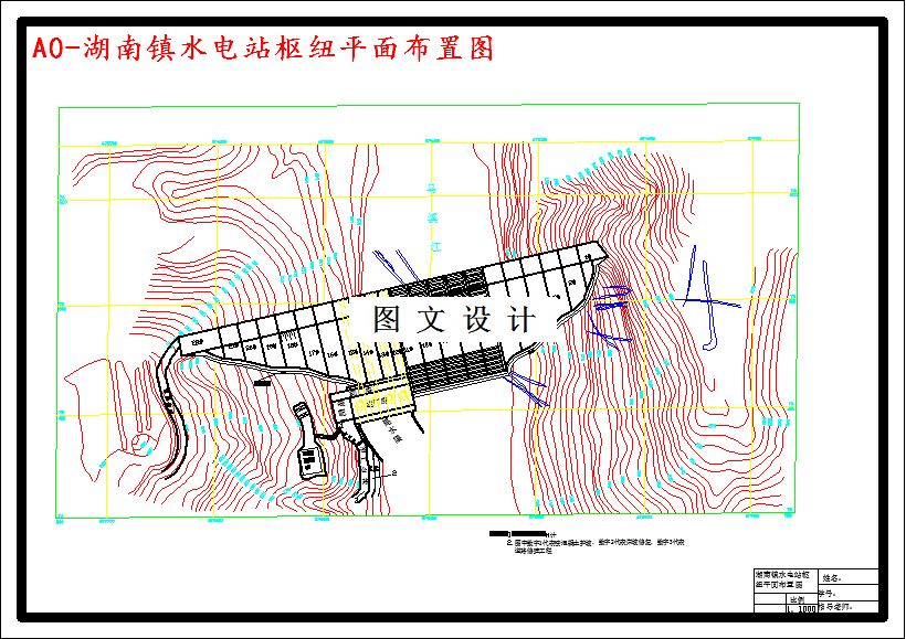 湖南镇水电站挡水建筑物为混凝土重力坝,坝址处于山前峦,坝址处河谷狭窄,两岸地形对称,覆盖层较薄,为单一的流纹斑岩,地质状况良好。大坝设计蓄水位231m,设计低水位196m,校核洪水位238.33m,校核洪水最大下泄量9022.95m3/s,设计洪水位235.33m,设计洪水最大下泄量6995.85 m3/s。由水文条件计算湖南镇水电站水库为多年调节水库。湖南镇水电站装机容量为18. 8万千瓦,采用四台4.7万千瓦发电机水轮机层安装四台 HL-180-LJ-300型号水轮机。湖南镇水电站挡水重力坝坝顶高程239米(不包括1.2米高防浪墙),最大坝高126米,最大坝宽17米。溢流重力坝堰顶高程222.07米,溢洪道净宽70米,闸门采用平板15(宽)×8.5(高)闸门。坝顶总厂407米。湖南镇水电站采用坝后式厂房。考虑到交通方便,厂房设于左岸,主厂房长度为58米,装配厂长17.6米。主厂房宽度20米,上游侧9.5米,下游侧10.5米。在高程方面控制高程水轮机安装高层123.55米,发电机层133.02米,桥吊高程147.12米,厂房顶高程153.64米,安装场高出发电机层4.18米。副厂房位于主厂房上游侧。