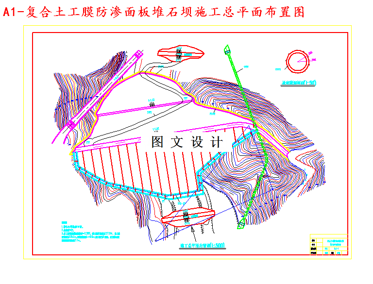 本次设计主要是开发利用乐安河流域的水利资源,建设一个以发电为主,同时兼顾灌溉、供水、防洪及养殖等综合利用效益的跨流域开发的水利水电枢纽工程。 在明确了该项目的建设目并且具有了建设依据和条件后,我们设计的枢纽概况如下:乐安河水利枢纽复合土工膜面板堆石最大坝高53.0米,装机6400KW,电站设计水头174米,保证出力1461KW,装有两台3200KW机组,主坝长218米,上游边坡1:1.5,下游边坡在马道以上1:1.52,马道一下1:1.53。复合土工膜面板堆石坝是一种新坝型,其防渗材料为复合土工膜。所以复合土工膜的设计、施工、质量控制是该类坝型的关键技术。在设计的过程中,我们参考了以前的堆石坝,同时也注重各细部设计并综合考虑了该工程的整体统一性。总的来说,我们在设计过程中既充分运用了所学知识,也广泛参考了设计施工方面的相关书籍。