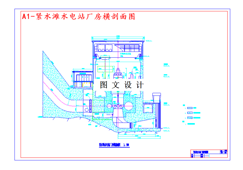 紧水滩电站紧水滩水电站位于龙泉溪上,是瓯江上游干流梯级开发的第一级水电站,工程以发电为主,兼顾航运、放木及防洪等综合利用要求。该工程采用高水头大坝,挡水建筑物为混凝土重力坝,泄水建筑物为溢流坝,在洪水季节,河流最大泄流量为20000m3/s,此时用溢流堰泄流。设计洪水位为289.94m,校核洪水位为292.8m,正常蓄水位为284m,设计死水位为264m,坝顶高程294.0m,坝基开挖至高程197.0m,整个坝高97.0m,坝底高程197m。上游坝坡坡度1:0.15,下游坝坡坡度1:0.75,溢流坝堰顶高程272.6m。本枢纽河谷底宽80m左右,坝顶高程处坝轴线长288m,根据布置,溢流坝段布置在河床左边,厂房布置在右岸。因右岸比较平缓,可布置开关站,电厂办公管理用房设施。该工程采用坝后式水电站布置方式,通过计算选用了混流式水轮机型,其直径为3.3m,转速为187.5r/min。安装水轮发电机组4台, 单机容量5万千瓦,总装机容量为200000kw。厂房宽为18m,长为76m, 水轮机安装高程201.7 m,发电机层高程211.8m,装配场层高程211.8m。各个枢纽建筑之间由公路相连,它连接了包括安装场、尾水平台、大坝和闸门启闭室等设施。