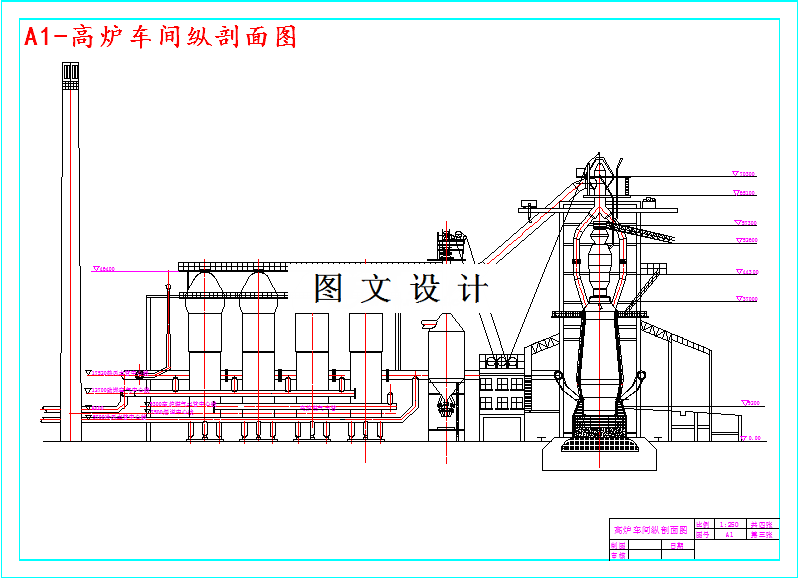高炉冶炼是传统的炼铁工艺,也是钢铁冶金过程中最重要的环节之一,在国民经济建设中起着举足轻重的作用。随着钢铁行业的蓬勃发展和节能环保要求的日益严格,高炉炉型逐渐走向大型化。本设计按照设计说明书的要求,本着优质、高产、低耗和对环境污染小的方针,对于在唐山地区设计建造一座年产生铁400万吨的高炉炼铁车间进行了详细设计,其中包括绪论、工艺计算(包括配料计算、物料平衡和热平衡)、高炉炉型设计、高炉各部位炉衬的选择、炉体冷却设备的选择、风口及出铁场的设计、原料系统、送风系统、炉顶设备、煤气处理系统、渣铁处理系统、高炉喷吹系统和炼铁车间的布置等。设计的同时还结合国内外相同炉容高炉的一些先进的生产操作经验和相关的数据,力争使该设计的高炉做到高度机械化、自动化和大型化,以期达到最佳的生产效益。