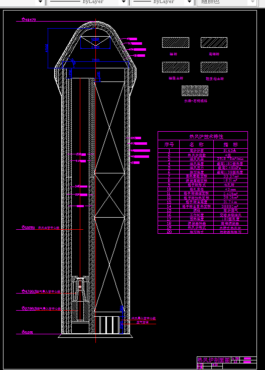 设计的热风炉采用传统改进型内燃式热风炉。蓄热式和燃烧室在同一炉壳内。这部分同时包括热风炉各种设备和阀门的选取计算。