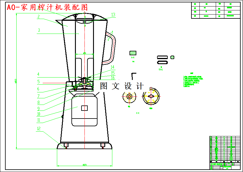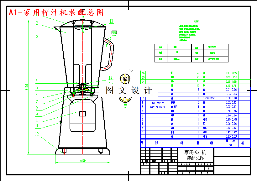 本次所设计的这台榨汁机是建立在原来榨汁机的工作原理和结构设计基础上的,市场上的榨汁机已经是集专业化、智能化,自动化,高效化、小型化、简单化、环保化、安全性为一体的榨汁机所设计的果汁榨汁机结构只是稍微的加以改进,希望能够早日走进消费者的家庭,并得以青睐。