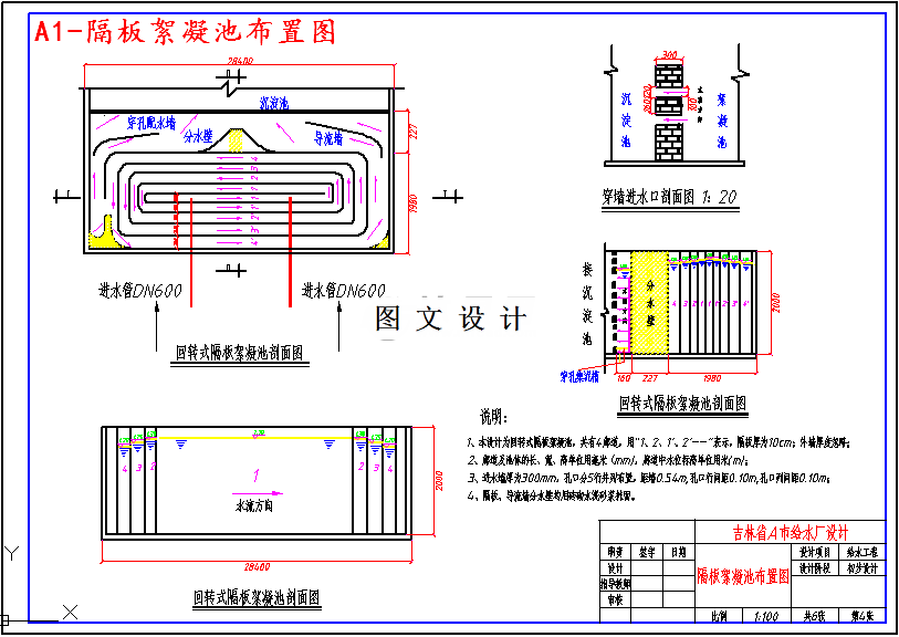 本设计通过对吉林省饮用水系统当前的形势和所存在的问题进行分析,强调建设供水厂的必要性和紧迫性,并进行给水厂处理工艺的初步设计。在本设计中,首先对国内饮用水水源现状进行分析,介绍水处理工艺的发展;基于对水源、水质和目的地周边地区的状况进行调查,从而对水厂进行设计。通过分析比较,设计了给水处理厂的工艺处理方案:管式静态混合器—回转式隔板絮凝池—斜管沉淀池—普通快滤池—氯气消毒。并详细计算各个反应池参数,运用绘图软件绘制主体构筑物,完成给水厂处理水工艺初步设计。