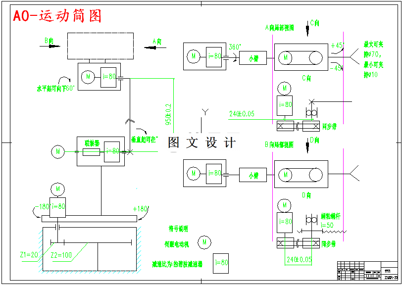 设计的是一个数控用装卸机器人的总体及其部件的设计,采用关节机器人的结构形式,包含腰部底座、大小臂、腕部和末端执行器,拥有6个自由度,能够实现腰部回转、大臂俯仰、小臂俯仰、腕部俯仰、末端执行器旋转和开合运动,可以更好的适应各种工作环境。本设计模拟了一个实际加工环境,给设计提出了具体的要求,更好的满足实际生产情况。本设计只需要完成机械结构以及驱动传动方式的设计,若作为装卸机器人整个产品来说,还需要电气控制系统和智能系统(包含机器人路径规划)。