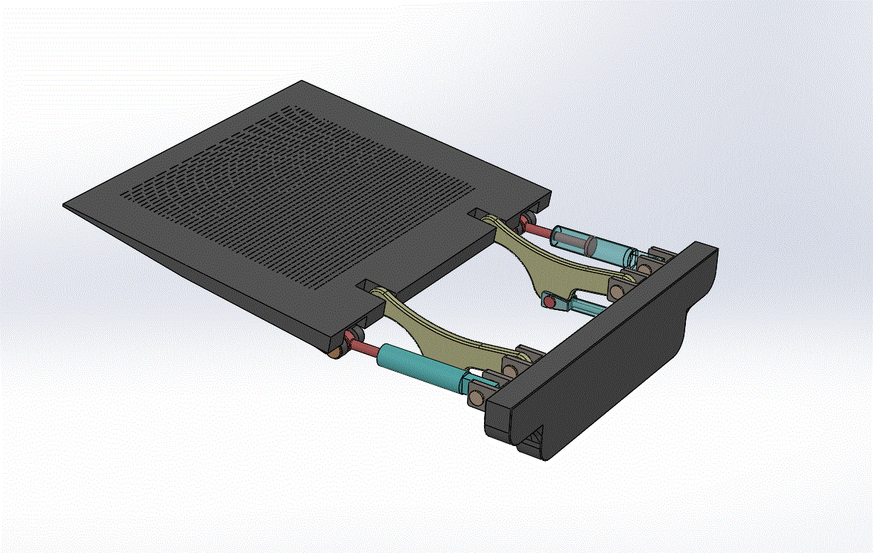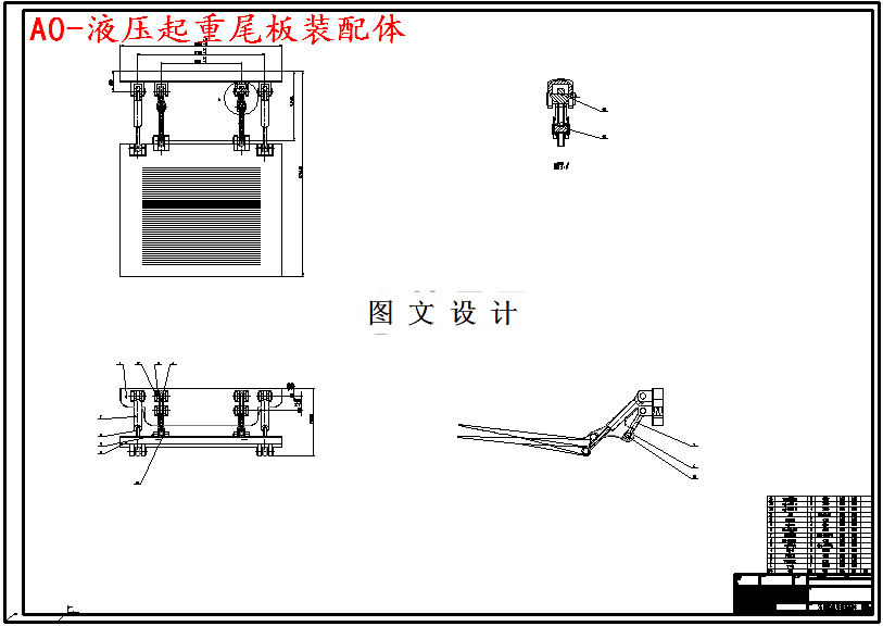 汽车尾板又叫汽车升降尾板、汽车装卸尾板、起重尾板、液压汽车尾板,是安装于货车和各种车辆尾部的一种以车载蓄电池为动力的液压起重装卸设备。汽车尾板由面板、支架、电控箱、摆动油缸、升降油缸、平衡油缸和液压管路等部分组成。汽车尾板广泛用于邮政,金融,石化,商业,食品,物流,制造等各行业。可大幅度提高运输及装卸效率,节省成本,是现代化物流运输的必备设备之一。本设计主要是对汽车尾板工作装置的设计,通过了解车体尺寸和尾板安装要求确定尾板的尺寸角度等参数,运用此参数建立模型通过仿真来对其运动进行分析,(包括位移、速度、加速度)对设计的尾板进行受力分析,分析尾板极限位置受力情况。用solidworks进行模型建立以及模型装配,使用绘图软件CAD绘制工程图。