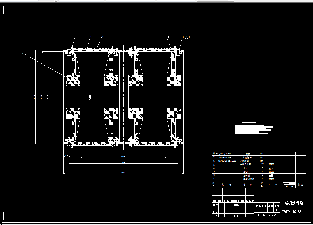 2JK-3.5/11.5单绳双滚筒缠绕式提升机设计矿井提升设备的任务是沿井筒提升煤炭、矸石、下放材料,升降人员和设备,所以矿井提升设备是联系井下与地面的重要生产设备,是矿山运输的咽喉,因此,它在整个综合机械化生产中 占有重要地位。本次设计的矿用提井设备是单绳双滚筒缠绕式提升机,其提升机的类型为2JK-3.5/11.5提升机。说明书的主要内容对提升容器,提升钢丝绳,卷筒,减速器,联轴器等内容的设计。随着科学技术的发展及生产的机械化和集中化,随着矿井技术改造的进程,提升设备在高效、大型、自动化方面都有着飞速的进步。近代化提升设备已发展成为大型机械--电气组或机组群。箕斗有效载重在国外已超过50吨,提升速度接近20米每秒;拖带功率达10000千瓦以上;在拖动控制方面已广泛采用了集中控制及自动控制设备。