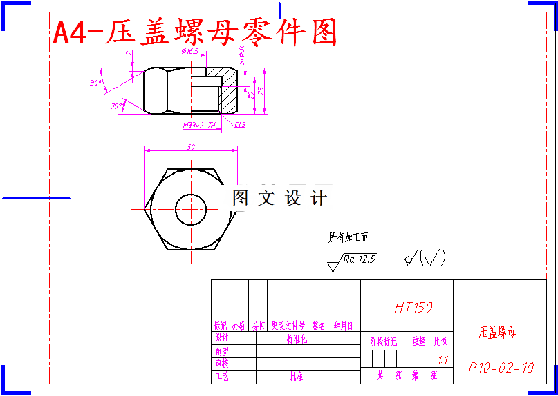 本设计任务是根据现有的锥阀零件图图,经过零、部件测绘验证,画出零件工作图,并拼画出部件的装配图;本设计的主要主要设计思想是针对现有的零件图,通过对产品功能、需求、形状设计、工艺设计,可行性等方面的分析,运用工程制图的投影原理及CAD建模手段,以设计小组分工合作的方式,实现其完整装配图和一整套零件图的设计测绘任务;本人在这次设计任务中担任了锥阀装配图,阀体、阀盖、阀门、填料压盖、压盖螺母、螺母、手轮的图样和三维建模工作,零件图和拼装的装配图相互吻合。锥阀的开启是转动手轮,通过方头带动阀杆旋转,再通过阀杆与阀盖之间的梯形螺纹连接即可使阀杆上下移动,通过卡环带动阀门上下移动,实现锥阀的开关,亦可调节流量大小。考虑到锥阀的阀杆开启或关闭行程相对较短,而且具有非常可靠的切断功能,并且,阀杆与阀盖间通过梯形螺纹连接,内外螺纹贴近不易松动,可承受传力矩较大,非常适合于对流量的调节。说明书前半部分详细介绍了锥阀的产品功能需求,后半部分说明了部分零件的形状选型及其制作工艺,部分零件的可行性与日常维护。