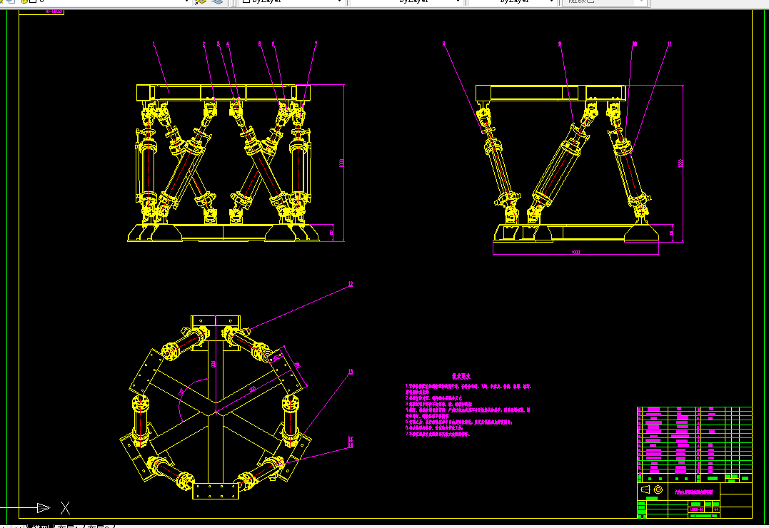 六自由度摇动试验台即广泛用于汽车装在载、船舶装载、飞机装载设备的平稳瞄准系统实验,又用于车辆、舰船、飞行人员进行训练模拟训练。六自由度振动利用斯图尔特平行的空间结构和变化六到六度的自由伸缩杆长度的平台运动测试表(x,y,z,α,β,γ)的操作,就可以实现各种运动的空间形式。本文主要对六自由度摇动试验台本体结构设计、液压缸设计、控制系统(单片机)电气原理设计和液压油路及电液伺服阀运用四方面进行说明。