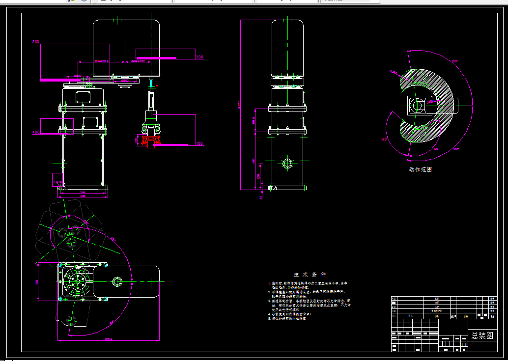 本设计从一个四自由度的平面关节型机器人的工作内容出发,结合该机器人的运动方式,确定了能实现预定运动的合理传动链及总体传动方案。设计结合各个自由的运动方式和传动方案,对各传动链上的重要零部件进行了结构设计。
