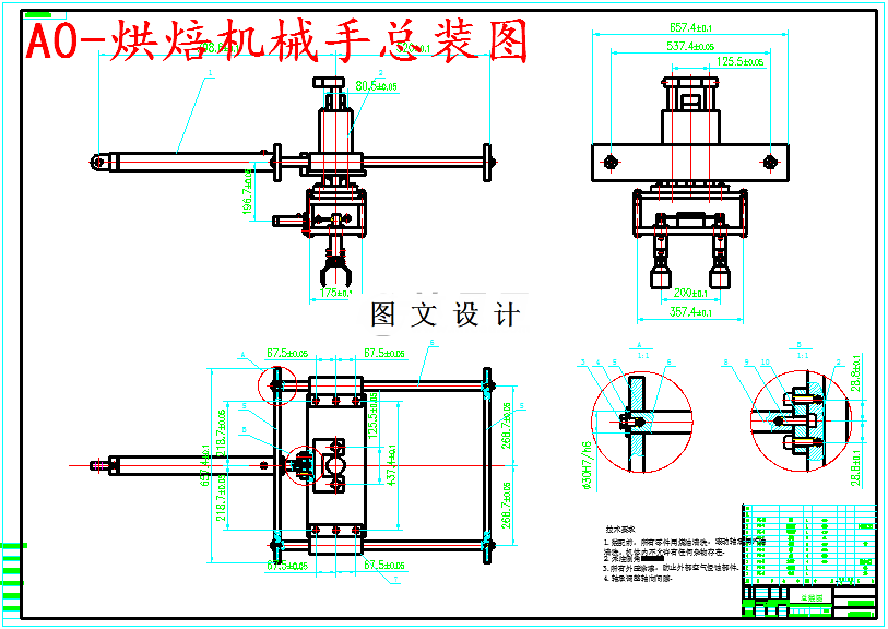 通过了解的组成和机器人的分类,以及国内外形势的成长,为整体方案设计,确认四个自由度和直角坐标型机器人。本机械手为烘焙类食物流水线自动装夹机械手,故设计了机械手的夹持式手部结构。计算出了手腕转动时所需的驱使力矩,确认了相关尺寸,设计了机械手的腕部结构;设计了机械手的手臂结构;设计了手臂伸缩,升降用机械限位。