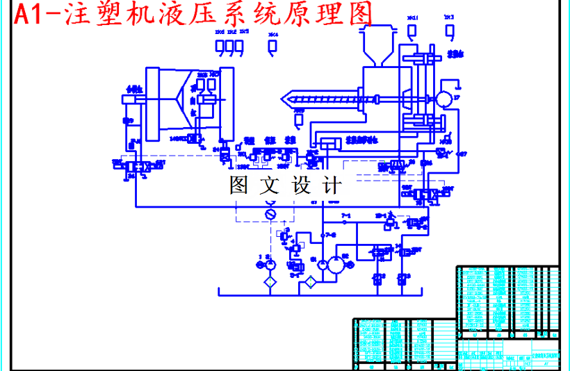 液压系统是注塑机的重要组成部分。 注塑机在一个工作循环一次完成慢速合模、快速合模、 注射座前移、注塑、保压、预塑、冷却、慢速开模、快速开模、顶出、顶出退回等工艺循环动作。本次SZ-A250注塑机的液压系统设计根据工艺循环动作的技术要求,将完成注塑机的液压工作原理、液压系统主要参数、拟系统工况图、系统原理图、压力循环图、功率循环图、压元件的选性、相关参数的计算及性能验算。
