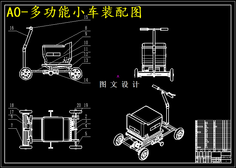 随着经济社会的发展,人们生活水平的不断提高。中国老龄化的程度越来越严重,对老年人的关心越来越少,随着而来的老年人产品的缺乏问题也更应重视起来。老龄化的到来给老年产品带来了一定的市场,老年产品不仅仅是对老年人群的关注更是人性化的体现,本设计研究的方向有,第一对老年人的生理、心理做了细致的分析,包括老年人的年龄、身体健康程度、心理变化等;第二,对于现有电动小车进行调研,分析。第三人性化的设计出小车的结构,并且对其安全性、可靠性进行分析。第四此设计小车的功能的多样性。主要设计工作有以下几项 1)设计了小车的移动系统。根据小车的轻便性和可靠性进行选择,采用可变速的电动机,减少了变速箱的重量,转向系统参考普通汽车的方式进行简易变换,采用四轮小车机构,使用电机驱动,有效的满足自由移动和承载能力。 2)设计了小车的变形装置,采用前后车架的形式,中间用类似于螺栓的链接方式,松螺栓可进行变形,紧固螺栓可进行定位。有效的满足变形的需要。