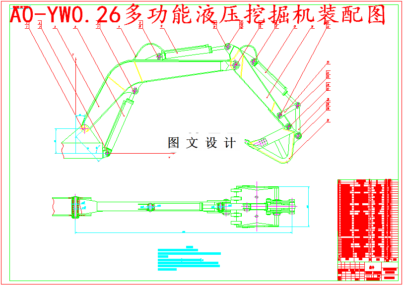 本设计的是一种挖掘机的挖掘装置,在为工业、民用上有特殊用途的挖掘装载机,煤矿井下狭小空间清理、装载、运输等工作都可以用它完成,也可以用于冶金、矿山、隧道建设等场合的挖掘装载工作。在本设计中,通过对国内外现有技术的了解和分析,利用任务书上所给定的挖掘机铲斗的斗容,选用标准容量铲斗,根据所选出的标准铲斗,利用给出挖掘机的最大挖掘阻力、最大卸载高度、最大挖掘深度这些量来计算动臂、斗杆、铲斗各部分参数。