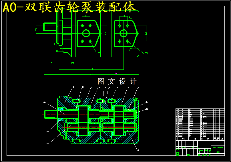 双联齿轮泵是一种常用的液压泵,它靠两对齿轮的进入和脱离啮合完成吸油和压油,且均存在泄漏现象、困油现象以及噪声和振动。困油现象引起双联齿轮泵强烈的振动和噪声还大大所短双联齿轮泵的使用寿命,解决困油问题的方法是开卸荷槽。在设计双联泵时,首先掌握双联齿轮泵的工作原理和结构特点,然后规划双联齿轮泵的组成与结构,按照要求明确各个结构的具体数据。根据确定下的前后泵排量和压力前泵体排量、压力以及后泵体排量、压力,首先选择齿数Z,确定齿轮模数m,确定齿宽B,对各齿轮进行设计和校核。然后选定转速,确定齿轮压力角 ,确定变位系数及齿轮尺寸,对轴进行设计和校核。 再对卸荷槽尺寸设计。决定进、出口形状、尺寸。之后进行轴承的选择,键的选择与校核 ,连接螺栓的选择与校核 ,泵体壁厚的选择与校核。经过校核,设计结果可以达到预期设计目标。