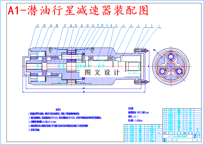 首先简要介绍了设计背景以及齿轮减速器的研究现状和发展趋势,然后比较了各种传动结构,从而确定了传动的基本类型。论文主体部分是对传动机构主要构件包括太阳轮、行星轮、内齿圈及行星架的设计计算,通过所给的输入功率、传动比、输入转速以及工况系数确定齿轮减速器的大致结构之后,对其进行了整体结构的设计计算和主要零部件的强度校核计算。其中该减速器的设计与其他减速器的结构设计相比有三大特点:其一,为了使三个行星轮的载荷均匀分配,采用了齿式浮动机构,即太阳轮与高速轴通过齿式联轴器将二者连接在一起,从而实现了太阳轮的浮动;其二,该减速器的箱体采用的是法兰式箱体,上下箱体分别铸造而成;其三,内齿圈与箱体采用分离式,通过螺栓和圆锥销将其与上下箱体固定在一起。最后对整个设计过程进行了总结,基本上完成了对该减速器的整体结构设计。