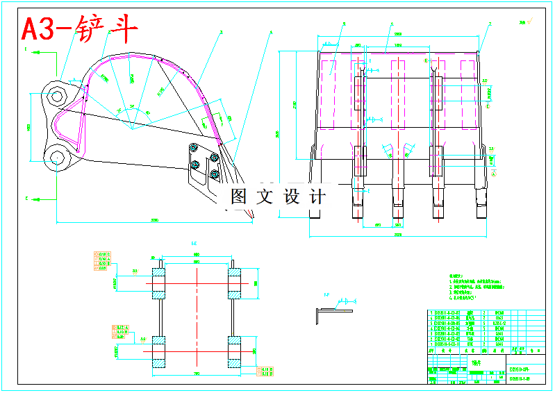 采用的设计方法主要是参照相关机型进行测绘、比拟反复验算确定尺寸。 在设计中应注意工作装置设计原则,最大卸载高度不低于13.3米,最大挖掘高度19.78米,在各部件满足要求的条件下实现9.34米最大挖掘深度,19.4米最大挖掘半径,铲斗最大挖掘力932KN,斗杆最大挖掘力912KN,实现挖掘的功能。