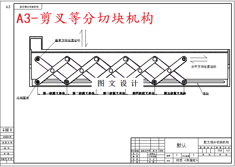 以面包加工前期的面团等分为例,设计了简易的可控间距的等分切块机构,以便于制造不同的长度不同大小的面团,已此原料来进行面点制品的制作,对面团进行等间距分切,其中包括机构的设计,等间距的调节,机构的固定方式,材料的限位进行了选型设计。