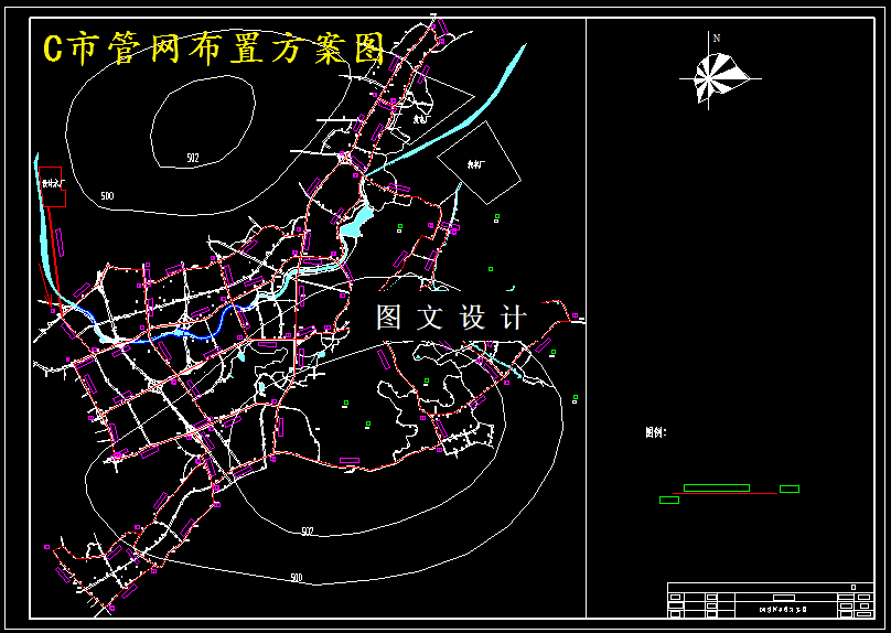 本设计对C市的地形,水源和气候条件等进行了调查,根据该城市的城市规划和居民用水水量的情况,计算出C市总用水量并对C市供水管网进行布置。根据当地地形气候等条件,选择C市主要河流作为供水水源,以保证稳定有效的取水。并通过分析原水水质,并结合当地其他水厂净水工艺处理经验,探究取水构筑物形式和净水工艺流程,并探讨不同的取水方案及水厂处理工艺所能处理达到的水质效果,权衡其经济可行性以及可操作性,选用最优方案作为净水处理工艺流程,并对所采用的每一个构筑物进行了仔细的计算和校核。