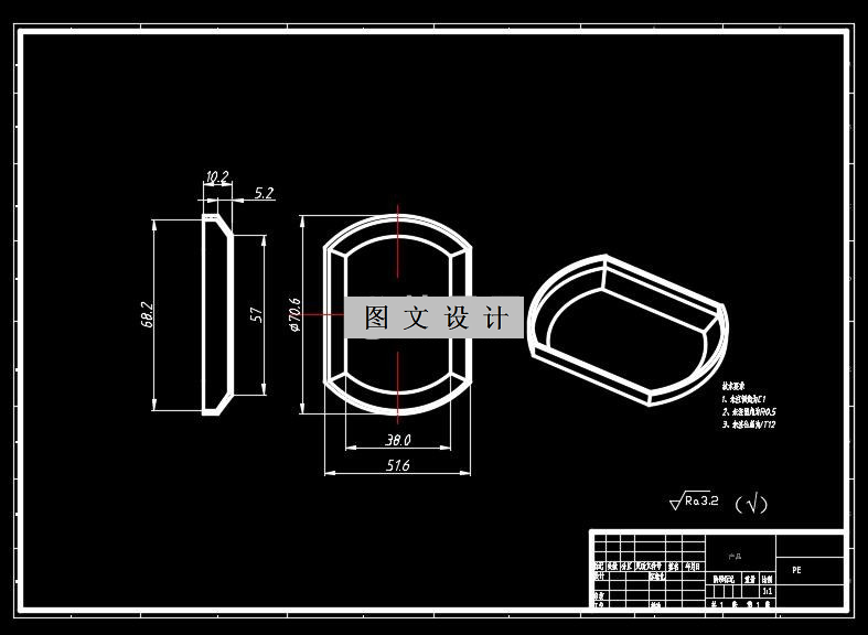 盒盖(MT6)注塑模设计采用的是一模一腔,浇口形式采用的点浇口,冷却方式采用的是环绕式冷却,推出方式采用推杆推出,分型面采用的双分型面,点浇口进料。1459497