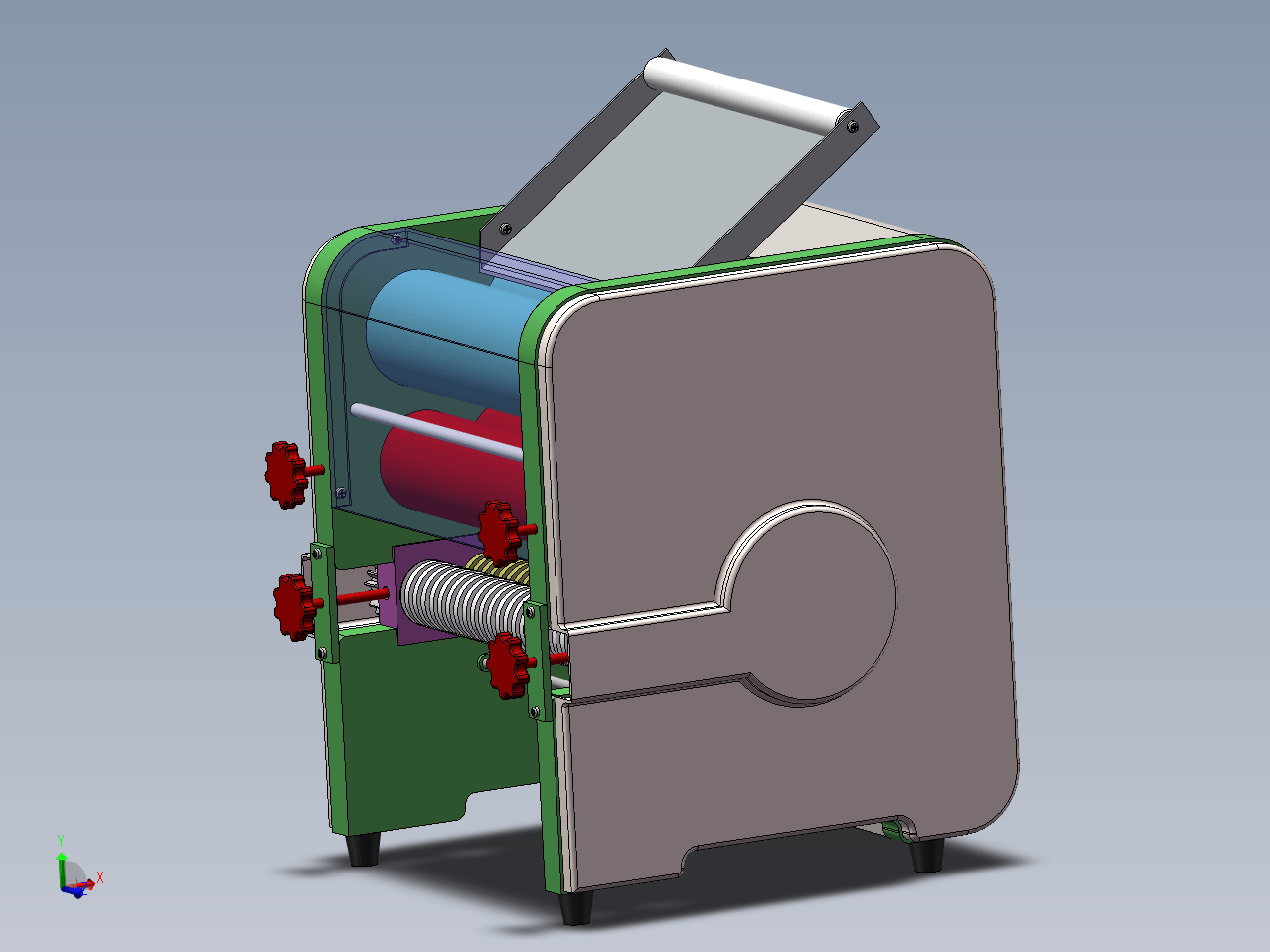 本文阐述了面条机在当今社会上的发展状况,针对现有面条机结构复杂、功能单一、操作复杂的问题,设计了一种小型面条机装置,该小型面条机以电动机为动力源,以带传动、齿轮传动为主要传动方式,主要由压面装置、切面装置、传动装置、调节装置组成。该面条机装置能实现从压面再到切面整个过程自动完成的功能。对装置进行了总体的方案设计,并详细说明了该装置主要零部件的设计思路以及外观结构。此次课题所设计的小型面条机设备具有轻巧便利,简单易操作。