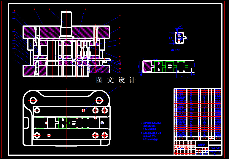 用模具技术生产的制品具有高精度、高复杂程度、高一致性、高生产效率和低消耗等特点。由此可见,模具技术已成为衡量一个国家产品制造水平高低的重要标志,决定着产品的质量、效益和新产品的开发能力。 本说明书详细的论述了冲压模具的全过程。冲压模具即是在冲压加工中,将材料(金属或非金属)加工成零件(或半成品)的一种特殊工艺装备。 该零件是抽屉或文件柜的按钮锁,该产品目前市场的需求量非常大。价格较低。改进后的该产品的模具采用了由送料机自动给料的加工方法、成本低、生产效率高。该产品的精度要求一般,结构简单。关键是怎样实现机器自动给料,从而省去人工给料的过程。本文还主要论述了冲裁零件的结构工艺分析、凹凸模刃口尺寸的设计计算、冲裁排样与定位元件的设计、冲压力及压力中心的计算和模具的主要零件的结构设计等。 改进后的模具可实现自动化,大大降低了成本,提高了生产效率。 关键词: 落料、冲孔、模具间隙