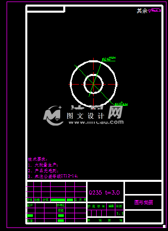 此零件是个同心圆的垫圈,外形直径为φ60mm,内孔直径为φ24mm,壁厚尺寸达到18mm,完全超过了复合模的最小壁厚的尺寸,因此选择设计倒装结构的复合模,通过排样设计,模具各个尺寸的计算后,绘制模具结构图和各个零件图,并计算冲压力的大小,选择压力机型号,并校核各个参数。