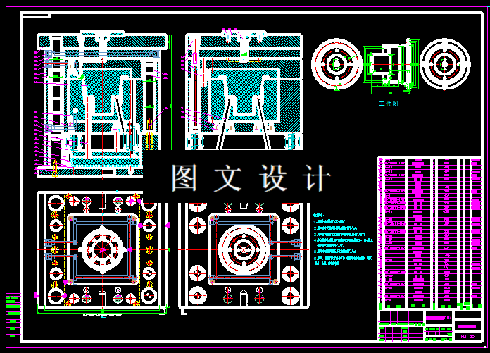 此灯座零件,材料为PC,零件的外形尺寸比较大,外形为圆形,因此考虑,选择一模一腔结构,工件的内侧还有台阶,因此需要设计斜顶机构,而且是四处对称分布,通过详细计算模具的各项尺寸,选择标准模架,利用三维二维软件,绘制模具装配图和零件图,选择合适的注塑机。