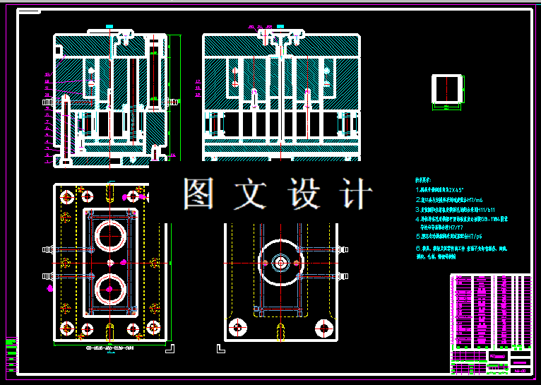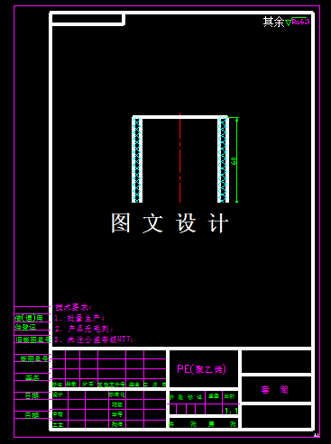 此套筒零件,是个直筒形零件,零件的形状比较简单,材料为PE,零件分布分析,设计一模两腔结构,计算型腔壁厚,型腔尺寸,型芯尺寸等,然后选择标准模架,绘制模具装配图和零件图,记录所计算的过程,相应的标注好尺寸,选择合适的注塑机。