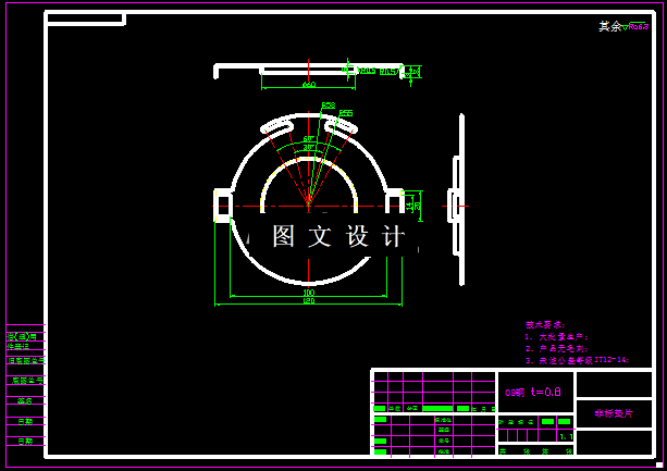 此零件是自行设计的非标垫片,零件的形状不规则,基本工序比较多,因此结合生产需求,将工序合并,设计多工位级进模,通过计算,获得工件的展开尺寸,绘制展开图,计算出模具的型腔尺寸,外形尺寸,绘制模具结构图和零件图,并建模3D,确保模具装配不干涉,记录下模具所需要的各个尺寸。