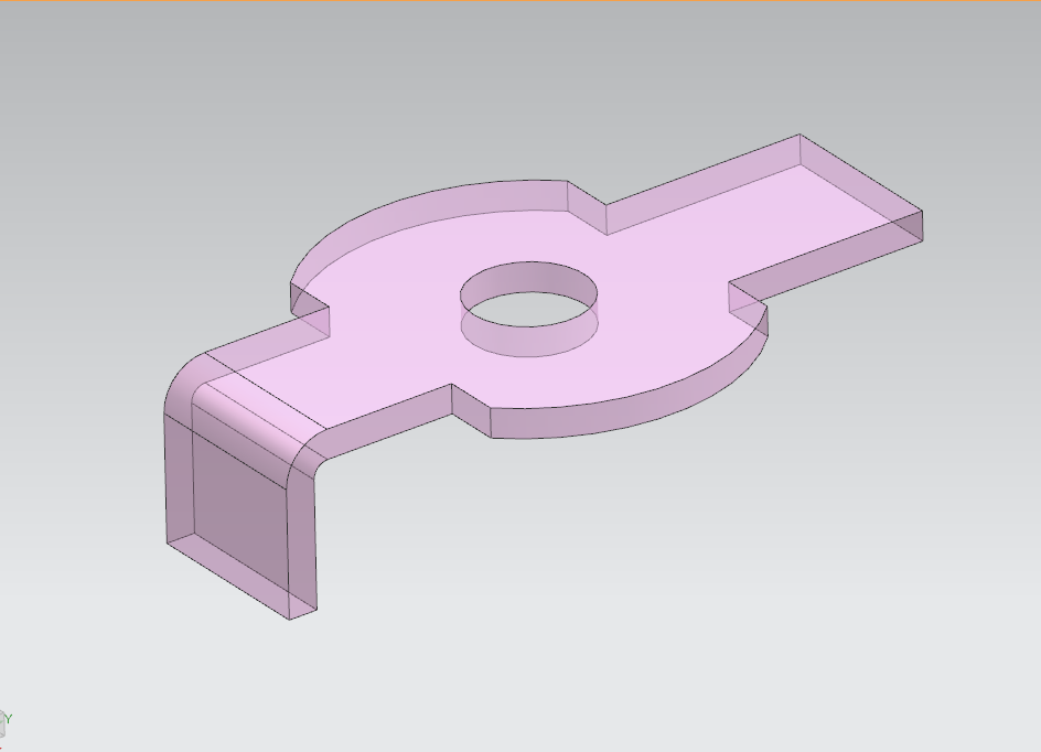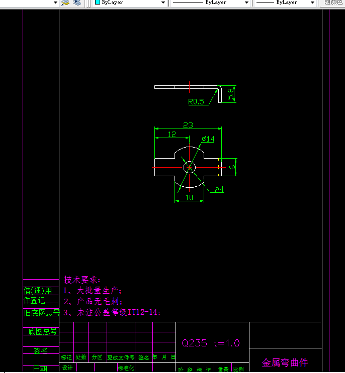 本次课题,选择的是一个金属弯曲件,作为典型的案例,设计其模具结构。此零件形状简单,生产量为中批量。设计模具前,对零件进行分析,选择合适的工序组合和冲压方案,通过合理组合选择最佳排样方案,这部分尤为重要,后续对型腔尺寸,模具各部分尺寸进行详细计算,设计出合理的模具结构。选择压力机的主要依据是冲压力的大小,因此需要详细计算冲压力,确保选择的压力机合格,然后绘制出模具加工零件图。
