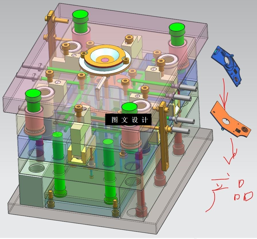 本作品是UG所画的汽车配件(汽车后尾灯底座)注塑模具设计,有World文档,模具的主要零件也出了二维图CAD。本次设计主要是运用UG软件进行模具的3D设计及生成模具二维图形,利用Moldflow软件对制件进行分析从而获得合理的模具结构。模具采用了一出二的方式,一个注胶口,共有三处斜顶,推杆脱模。设计难点主要在成型侧孔的滑块机构,模具有4个方向6个动模侧抽。有需要的朋友欢迎下载。