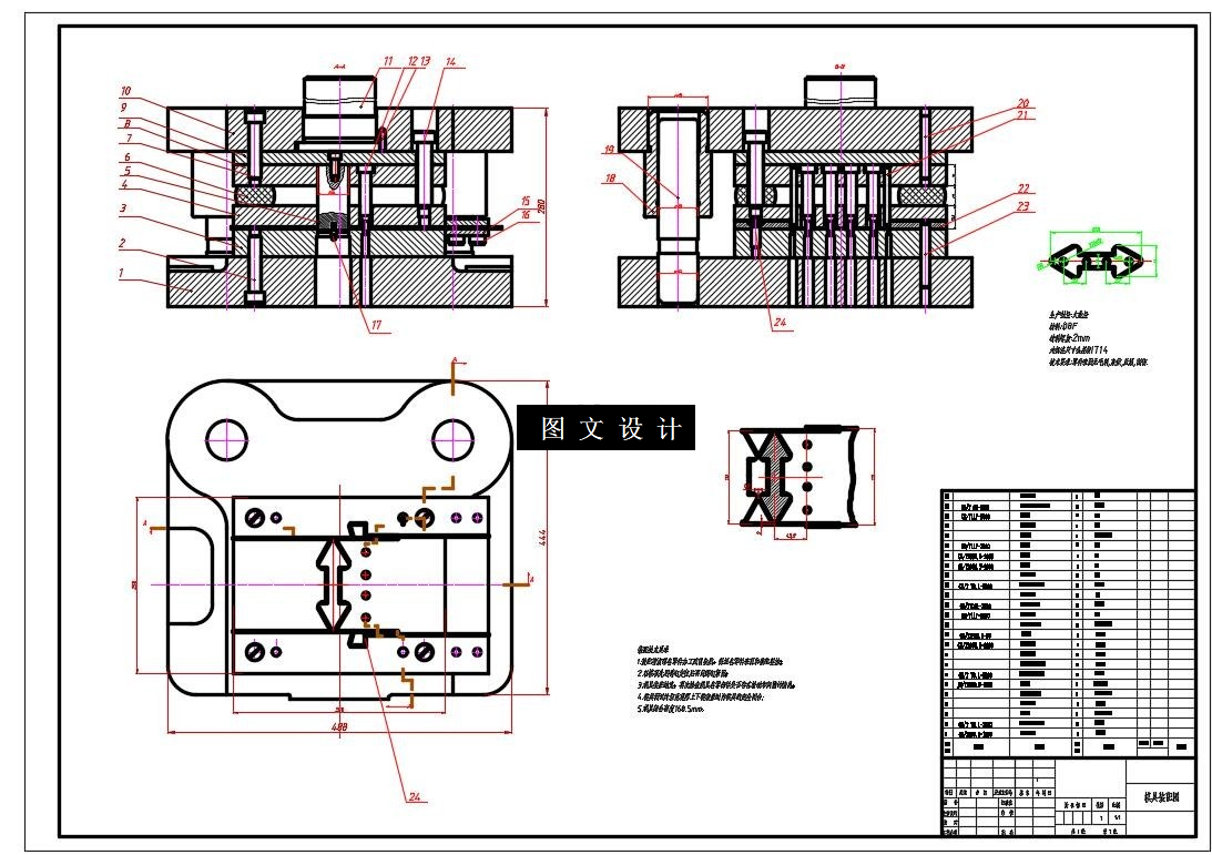 从冲裁工件结构分析,该工件轮廓结构由直线圆弧相切,工件形状具备对称性,工件工艺由落料和冲孔工序组成。模具的设计的设计先从工件的工艺结构出发,根据工件图纸要求和形状来确定模具的设计方案,进步一确定模具制造精度等级,和排样设计从而确定出模具的类型结构,从实际生产的角度出发,为了节约模具制造成本,提高产品生产效率,保证工件的生产精度,该工件的冲裁模具设计方案采用了级进模具冲裁。在模具设计前主要查找工件图纸中未标注公差的尺寸公差,根据尺寸公差来确定模具制造的精度,经过排样分析以后,开始进行模具的结构设计,计算模具的闭合高度、卸料力、冲裁力、冲裁间隙、模具装配配合间隙、凸模高度、压力中心、模具总压力,根据总冲压力选择冲压设备;所有的设计方案确定以后开始绘制模具草图、装配图、零件图、编写技术要求、设计说明书。