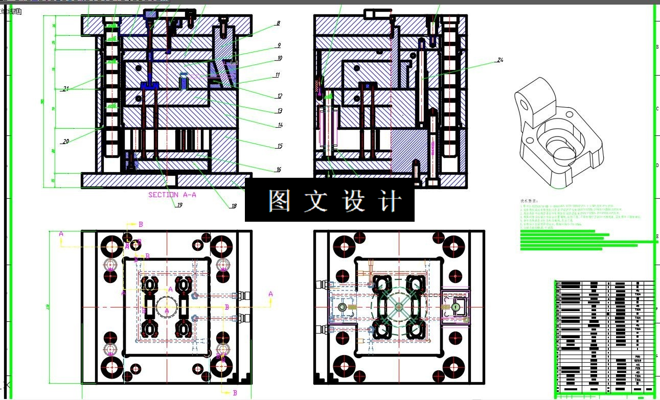 固定座注塑成型工艺与模具设计,材料方面是ABS,因为ABS的流动性比较差,所以为了能够保证填充完全。模的选择也要根据经验公式来选择合理的尺寸。模架选用是根据产品的注塑特点来进行选择,此外,冷却系统、浇注系统、顶出系统这些系统的设置等也是在整个设计的过程中得进行不断地调试的,都是为了得出最优的方案。为了完成这一次设计,查阅各种相关资料是必不可少的,在设计过程中需要用到一些二维以及三维的软件,比如CAD,UG这一些常用的软件。