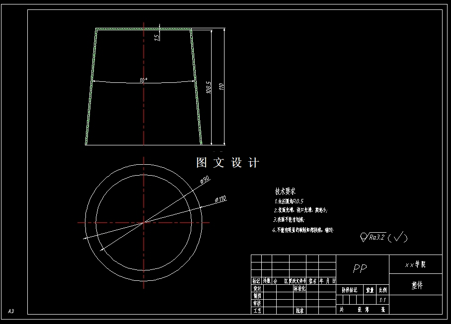 塑料属于工程实际中非常重要的一类材料,在整个工业领域中,这一门类发展最为迅速。注塑模具的发展,对整个国家的发展有着非常重要的作用,注塑模具行业必将是未来重点发展。 本次设计主要内容为成型800ml水杯设计一套塑料模具方案,通过查阅文献了解注塑成型原理和进行国内外研究现状对比,然后从800ml水杯的结构特点、尺寸精度及生产指标等入手,确定成型工艺参数及模具总体方案,分析过程需要依据理论设计原则及经济基础,为此选择合理的分型面和型腔布局及模架类型。经过详细说明和理论分析,该模具采取双分型面、一模两腔、点浇口进料、推杆脱模、水路冷却及整体嵌入式成型零件的结构规划,既保证了产品质量又简化了模具组成。本次利用UG软件创建800ml水杯注塑模具的三维模型,并绘制CAD装配图和零件图,从而能够提升产品开发效率和缩短设计周期。通过模架尺寸和注塑机参数校核计算等可以证实,模具的零部件大多为标准件,有助于降低装配难度和确保配合精度,可以生产出符合质量要求的800ml水杯。