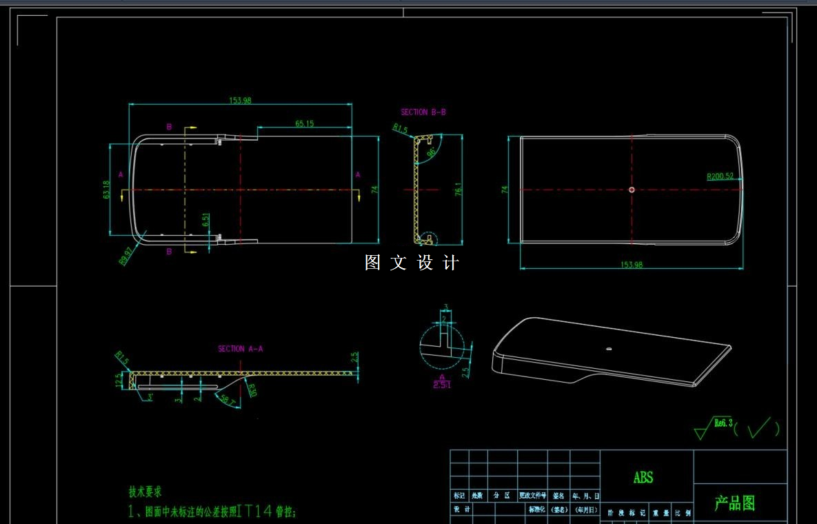 本课题研究的是计算器后壳模具,计算器后壳为我们日常生活中常见的公用设施,计算器后壳要求有比较高的强度和一定的柔韧性,所以我们选择了力学综合性能比较好的塑料材料ABS。在设计过程中,我们先对计算器后壳塑件进行工艺分析,来选取合适的模架和注塑机等等。经过塑件工艺性分析,该塑件为大型塑件,相应地需要设计大型模具和大型注塑机。该模具适合采用一模两腔模具结构,采用单点点浇口注胶,塑件脱模取出后,浇注系统凝料与塑件人工切除。