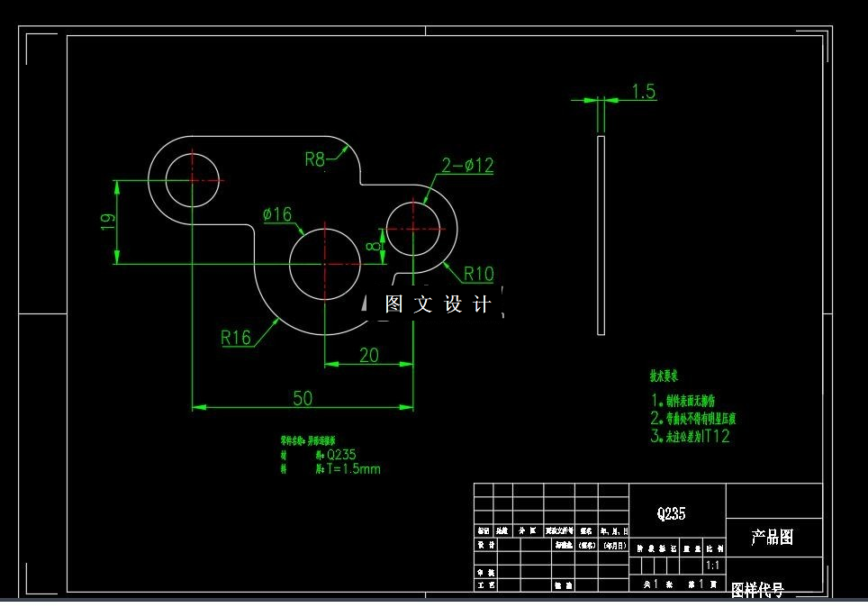 本设计是针对异形连接板这一部件设计制造一套冲裁模,首先详细的分析了待成型加工零件的具体工艺,结合实际情况设计该部件成型加工过程中的冲压工艺方案,借助本次模具设计过程的学习,能够有效掌握各种冲压工艺的相关知识,也能够熟练掌握模具设计的相关方法以及具体的设计步骤,学会选用合理的加工方法生产加工模具的各个零部件,学会根据实际需求设计制定相关工艺规程,学会根据实际需求设计制定模具的有关装配工艺;除此之外,进一步复习总结了冲压模具设计的相关知识内容以及各项专业知识;