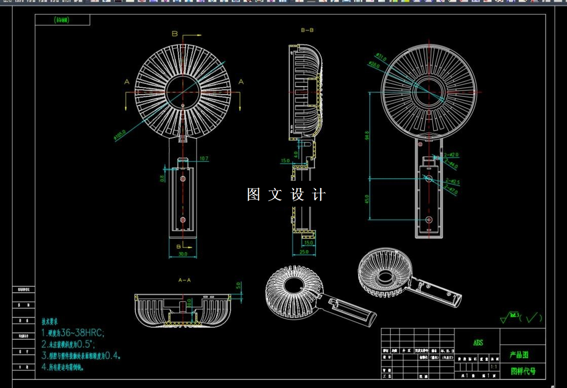 次设计成型加工生产的塑料制品是一个小风扇外壳塑件,该塑件产品的重量相对较为轻巧,具有相对较强的抗变形能力,自身硬度相对较高,具有较好的耐腐蚀性,同时具有较好的耐电弧性能。在本次设计之中,针对本文成型加工生产的小风扇外壳塑件,首先根据实际需求合理选择分型面,然后设计确定了注射模具的型芯结构以及型腔结构,综合考虑各项因素,最终以一模两腔的型腔布局方式设计模具的总体结构,设计确定选用侧浇口结构的模具浇注系统。结合本文设计注射模具的实际情况,以顶杆顶出机构设计该注射模具的脱模系统。