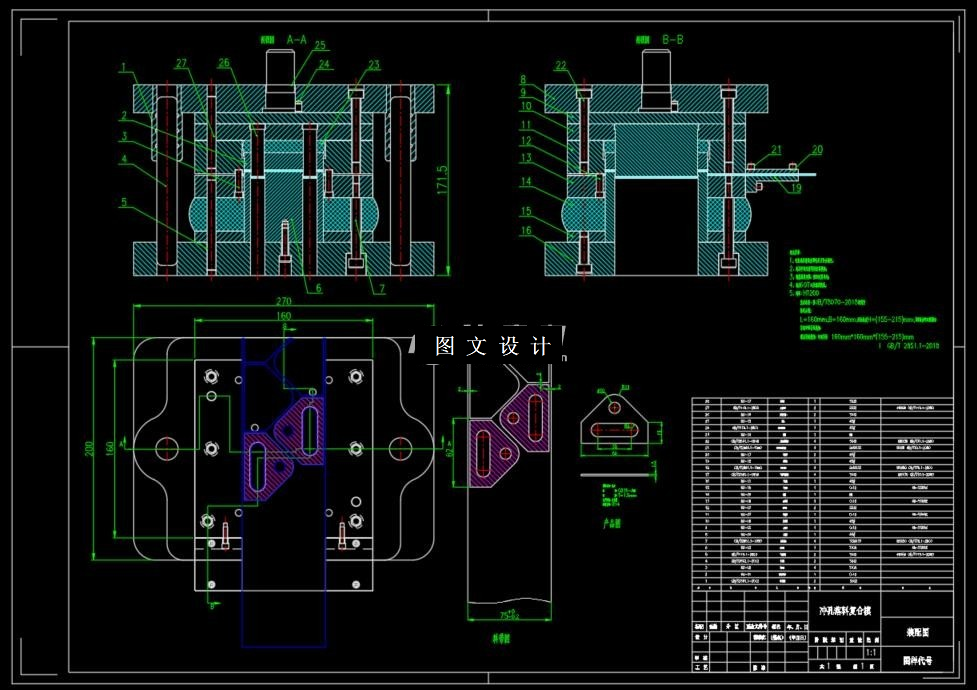 本设计是冲孔、落料复合模的设计。设计说明书中简要概述了冲压模具目前的发展状况和发展趋势。然后对工件进行了详细工艺性分析以及冲压方案的确定。按照冲压模具设计的一般步骤,计算并设计了本套模具上的主要零部件,如:凸模、凹模、凸凹模、凸模固定板、垫板、凹模固定板、卸料板、挡料销、推件板、顶件块等。模架采用标准模架,选用了合适的冲压设备。