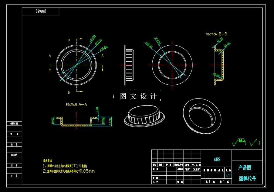 在设计的时候,本文结合塑件的特点,和材料的性能之后,对注塑模具的整体结构进行合理的计算与校核,以达到理论满足实践。对完成后的注塑模具,进行了注塑机的选择与校核。 本次设计中,采用了AutoCAD二维设计软件绘制注塑模具的二维装配图与非标零件图,采用了三维软件绘制模具的整体装配图,在计算机辅助设计中,还采用了专业的插件来进行辅助设计。