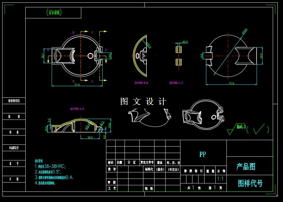 本文设计用于成型加工水杯盖塑件产品的塑料模具设计过程总结如下:首先针对水杯盖塑件产品,对其相应工艺进行分析研究;结合生产实际的相应参数,综合各种因素,对模架装置以及注塑机设备进行选型设计。分析研究水杯盖塑件产品的工艺性可知,该水杯盖塑件产品是一种小型塑件,故需选择小型注塑机设备用于成型加工生产。最终将本文模具设计成一模两腔的模具结构,该模具的浇口结构设计成单点侧进胶的形式。