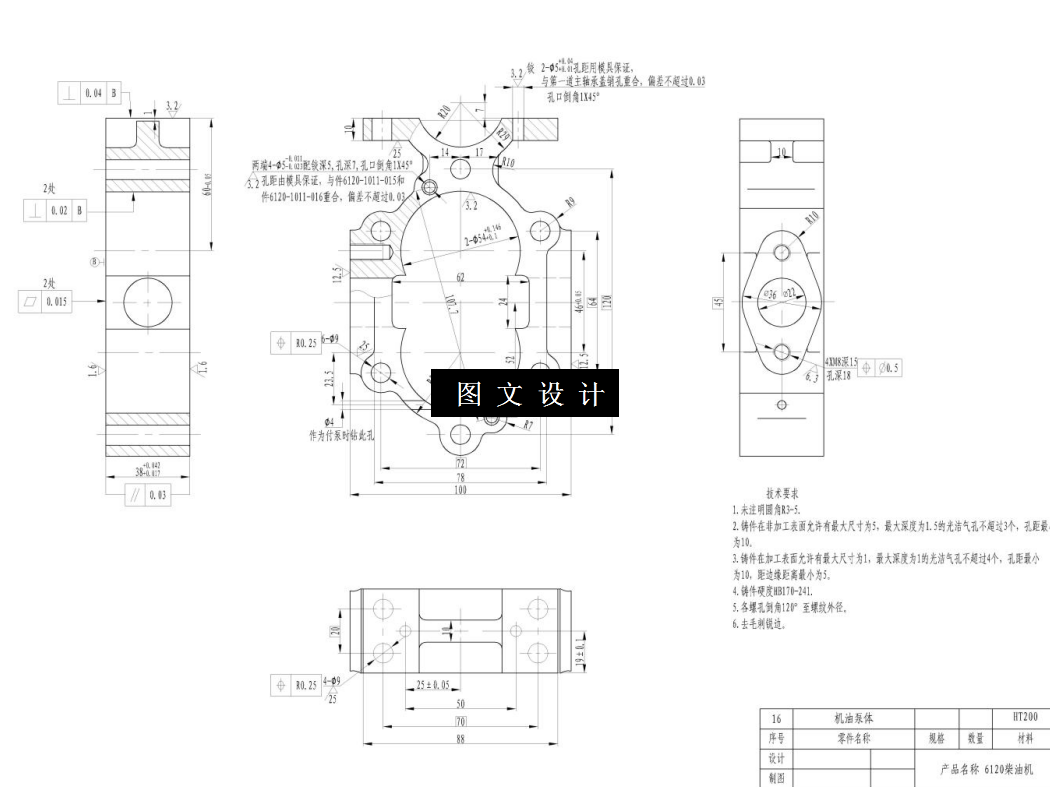 泵体加工工艺规程及夹具设计是包括零件加工的工艺设计、工序设计以及专用夹具的设计三部分。在工艺设计中要首先对零件进行分析,了解零件的工艺再设计出毛坯的结构,并选择好零件的加工基准,设计出零件的工艺路线;接着对零件各个工步的工序进行尺寸计算,关键是决定出各个工序的工艺装备及切削用量;然后进行专用夹具的设计,选择设计出夹具的各个组成部件,如定位元件、夹紧元件、引导元件、夹具体与机床的连接部件以及其它部件;计算出夹具定位时产生的定位误差,分析夹具结构的合理性与不足之处,并在以后设计中注意改进。