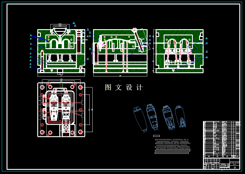 课题就是模具的设计过程。 通过对工件的正确分析,设计了一副一模两腔的塑料模具。确定了分型面、浇注系统等,选择了注射机,计算了成型零部件的尺寸。采用侧浇口,利用直导柱导向,推杆顶料,斜顶杆以及斜导柱、滑块完成脱模,经过模流分析对模具的材料、最佳浇口位置进行了选择。如此设计出的结构可确保模具工作运用可靠。最后对模具结构与注射机的匹配进行了校核,并用AutoCAD绘制了一套模具装配图和零件图。