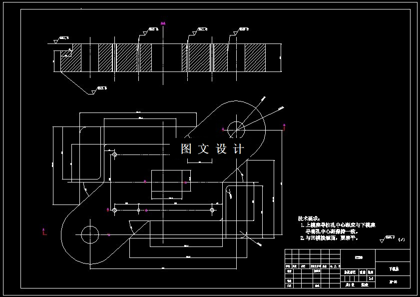 对接触簧片级进模的设计是本设计的主要内容,在本说明书中主要介绍了工件的工艺分析和排样方法的对比选择。之后计算了冲压力和冲压中心的,设计了模具的结构,包括凸凹模、凸模固定板、垫板、卸料部分、凸凹模工作尺寸及冲裁间隙,另外在最后进行了剩余模具零件的设计和强度校核。