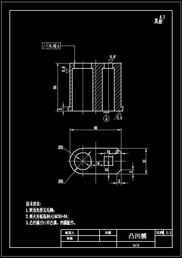 对拉链拉锁的冲孔及其落料模具的设计,通过对零件图形的结构和生产工艺性的分析,决定采取冲孔和落料在同一道工序完成的复合模,同时考虑到倒装式复合模的冲孔废料直接由冲孔凸模从凸凹模内孔推下,无顶件装置,结构简单,操作方便,故选用倒装式复合模具。