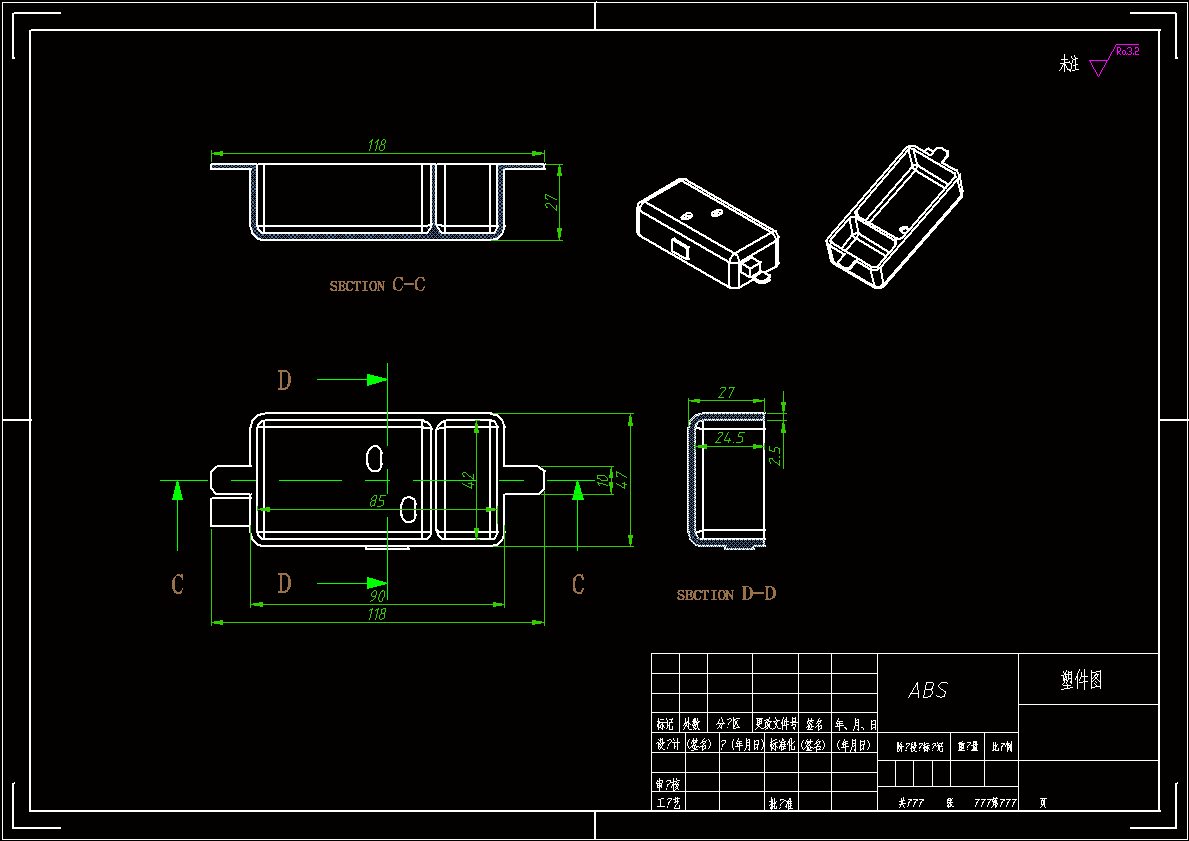 课题目标产品是一个生活中常见的外罩,其零件外形如图所示。具体结构和尺寸详见图纸,该塑件结构简单,生产量大,要求较低的模具成本,成型容易,精度要求不高。