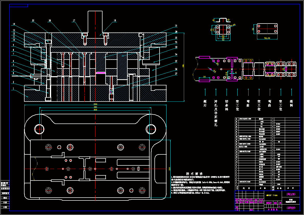 任务是完成垫片零件的冲压模具设计和制造仿真。通过多种方案的比较,本设计采用的是连续模结构,模具中设置了冲孔、落料,弯曲,翻边等工位。